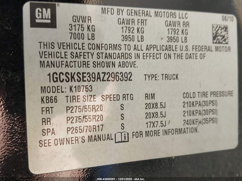 Цвет ЧерныйЦилиндры 8Привод Полный приводVIN 1GCSKSE39AZ296392Состояние СтационарноПовреждения Передняя или задняя