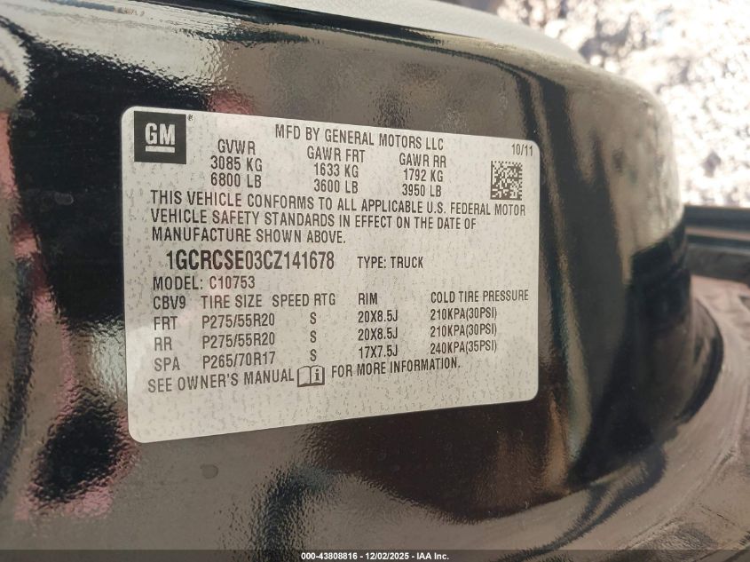 Цвет ЧерныйЦилиндры 8VIN 1GCRCSE03CZ141678Состояние Заводится и едет (проверено)Повреждения Правая сторона