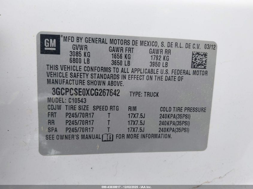 Цвет БелыйЦилиндры 8VIN 3GCPCSE0XCG267642Состояние Заводится и едет (проверено)Повреждения Передняя или задняя