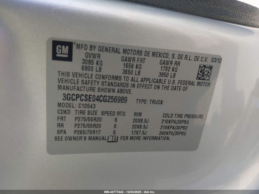 Цвет СерыйЦилиндры 8VIN 3GCPCSE04CG256989Состояние Заводится и едет (проверено)Повреждения Правая сторона
