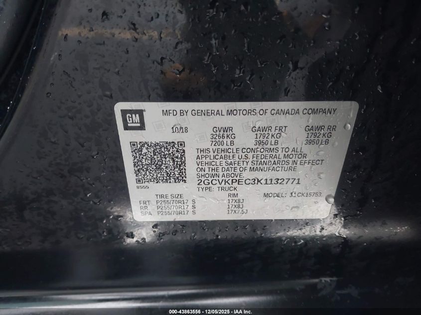 Цвет ЧерныйЦилиндры 8Привод Полный приводVIN 2GCVKPEC3K1132771Состояние СтационарноПовреждения Передняя или задняя