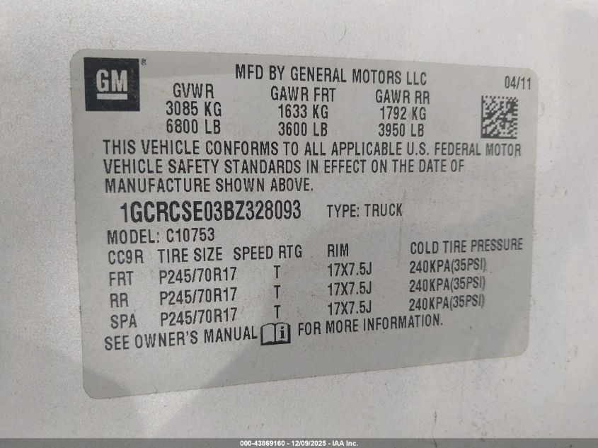 2011 CHEVROLET SILVERADO 1500 2011 року Бензин, 5.3, , vin - 1GCRCSE03BZ328093 из США