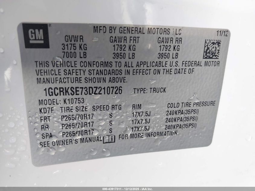 2013 CHEVROLET SILVERADO 1500 2013 року Бензин, 5.3, Полный привод, vin - 1GCRKSE73DZ210726 из США