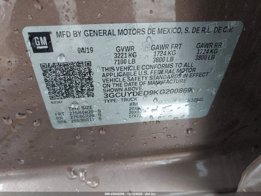 Цвет КоричневийЦилиндры 8Привод Полный приводVIN 3GCUYDED9KG200869Состояние Заводится и едет (проверено)Повреждения Передняя или задняя