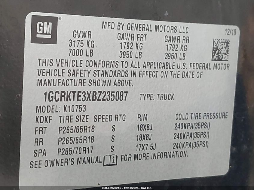2011 CHEVROLET SILVERADO 1500 2011 року Бензин, 5.3, Полный привод, vin - 1GCRKTE3XBZ235087 из США