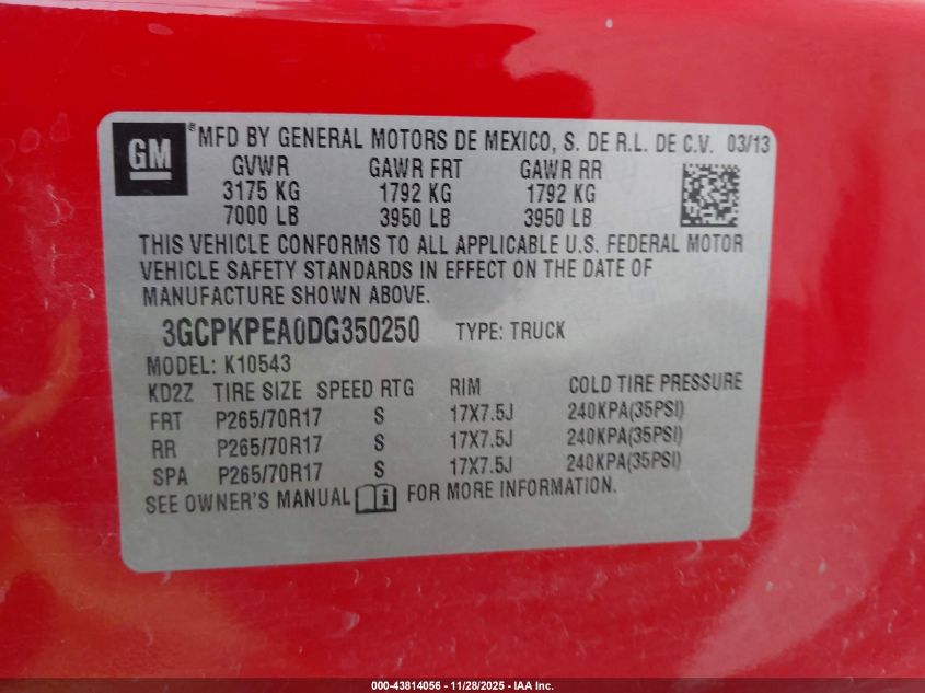 Цвет КрасныйЦилиндры 8Привод Полный приводVIN 3GCPKPEA0DG350250Состояние Заводится и едет (проверено)Повреждения Задняя левая