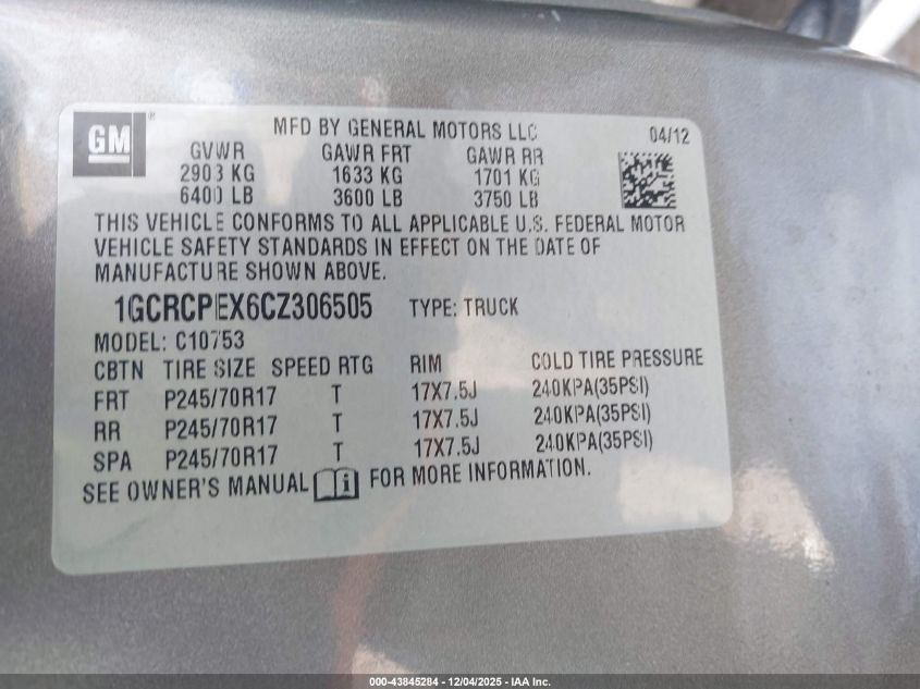 Цвет СерыйЦилиндры 6VIN 1GCRCPEX6CZ306505Состояние Заводится и едет (проверено)Повреждения Передняя или задняя