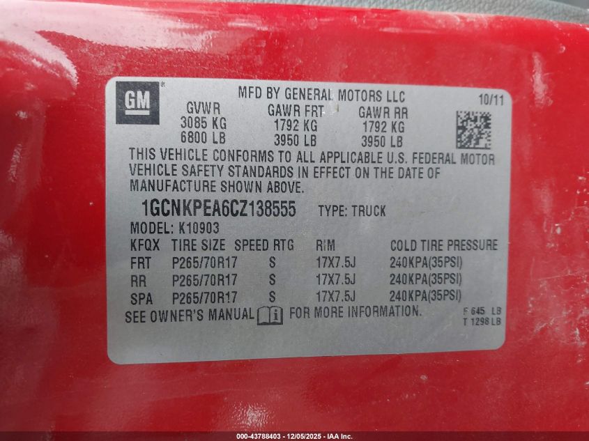 2012 CHEVROLET SILVERADO 1500 2012 року Бензин, 4.8, Полный привод, vin - 1GCNKPEA6CZ138555 из США