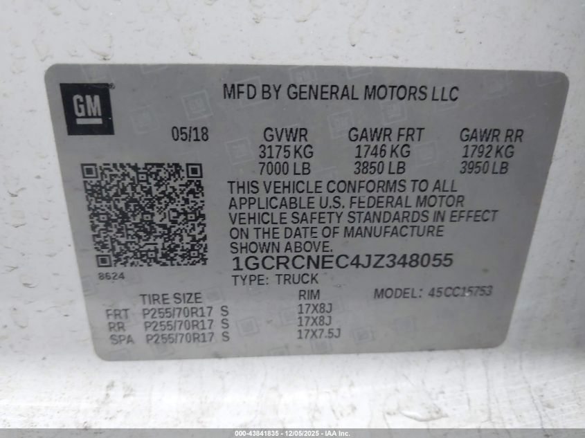 Цвет БелыйЦилиндры 8VIN 1GCRCNEC4JZ348055Состояние СтационарноПовреждения Передняя и задняя