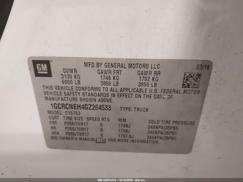 Цвет Цилиндры 6VIN 1GCRCNEH4GZ264533Состояние НеизвестноПовреждения Неизвестно