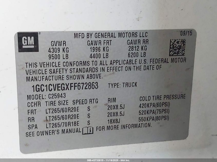 Цвет БелыйЦилиндры 8VIN 1GC1CVEGXFF672863Состояние СтационарноПовреждения По всему авто