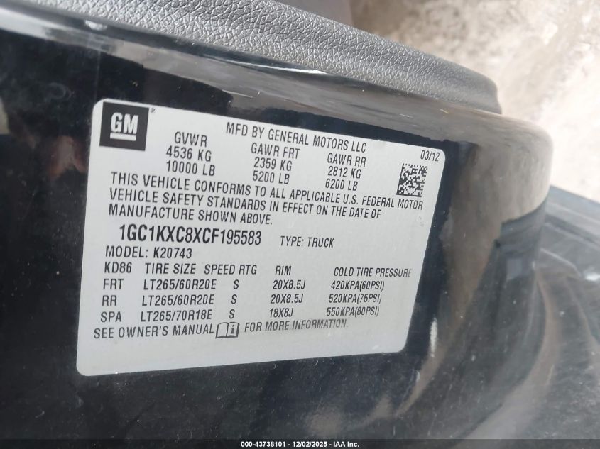 Цвет ЧерныйЦилиндры 8Привод Полный приводVIN 1GC1KXC8XCF195583Состояние СтационарноПовреждения Передняя или задняя
