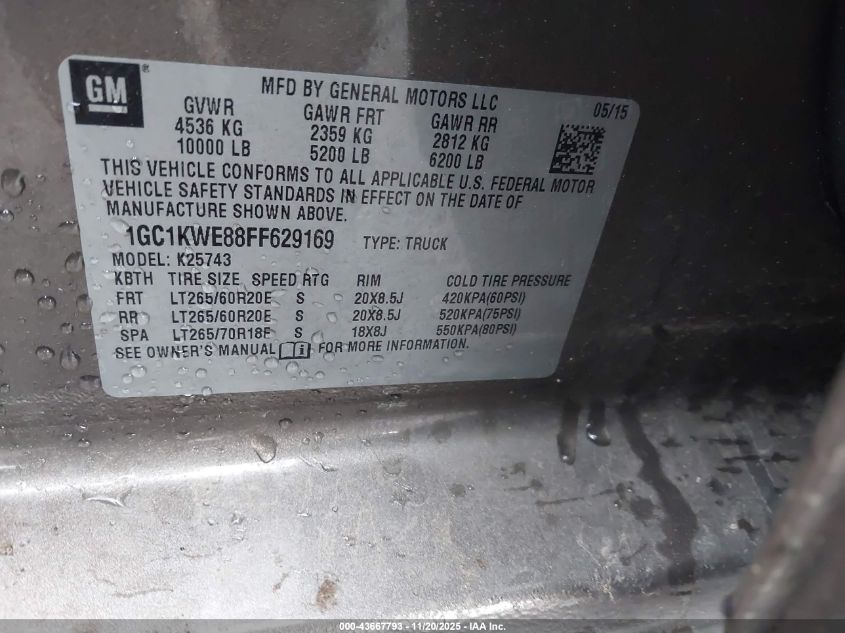 Цвет КоричневийЦилиндры 8Привод Полный приводVIN 1GC1KWE88FF629169Состояние СтационарноПовреждения Опрокидывание