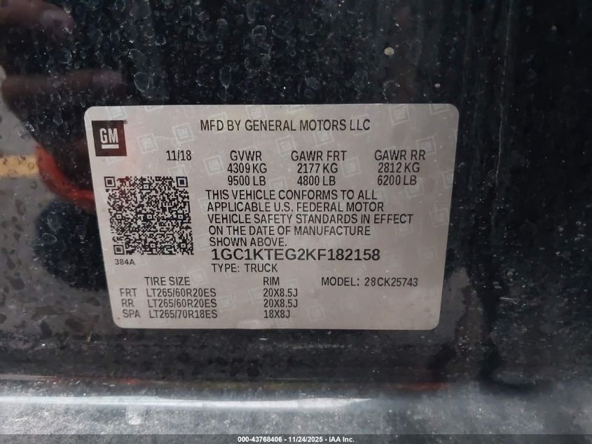 Цвет ЧерныйЦилиндры 8Привод Полный приводVIN 1GC1KTEG5KE182158Состояние СтационарноПовреждения Левая сторона