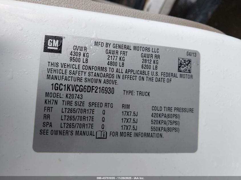 Цвет БелыйЦилиндры 8Привод Полный приводVIN 1GC1KVCG6DF216930Состояние Заводится и едет (проверено)Повреждения Передняя леваяДата аукциона 2025-12-16