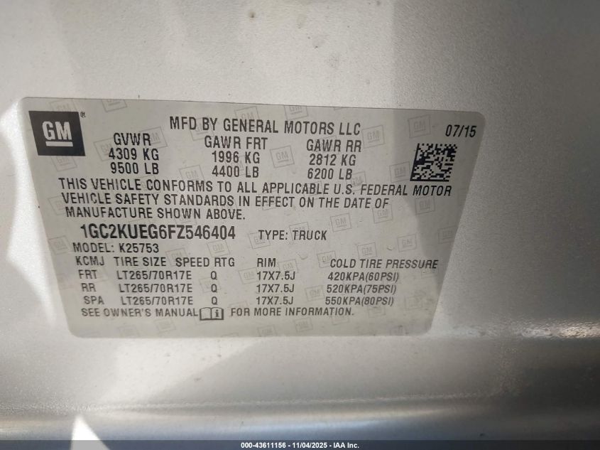 Цвет СеребряныйЦилиндры 8Привод Полный приводVIN 1GC2KUEG6FZ546404Состояние Заводится и едет (проверено)Повреждения Передняя правая
