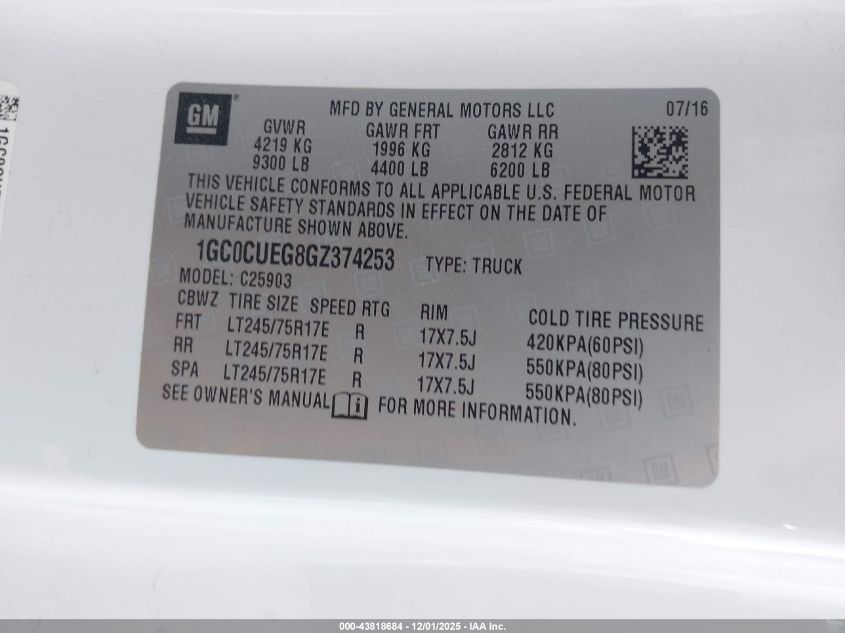 Цвет БелыйЦилиндры 8VIN 1GC0CUEG8GZ374253Состояние Заводится и едет (проверено)Повреждения Передняя и задняя