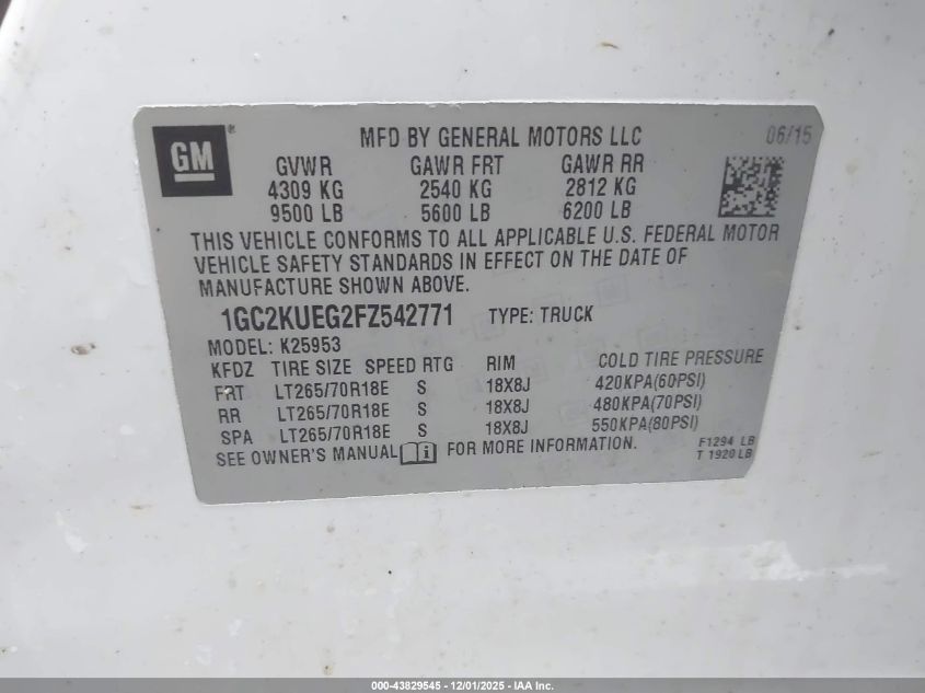 Цвет БелыйЦилиндры 8Привод Полный приводVIN 1GC2KUEG2FZ542771Состояние СтационарноПовреждения Пожар двигателя