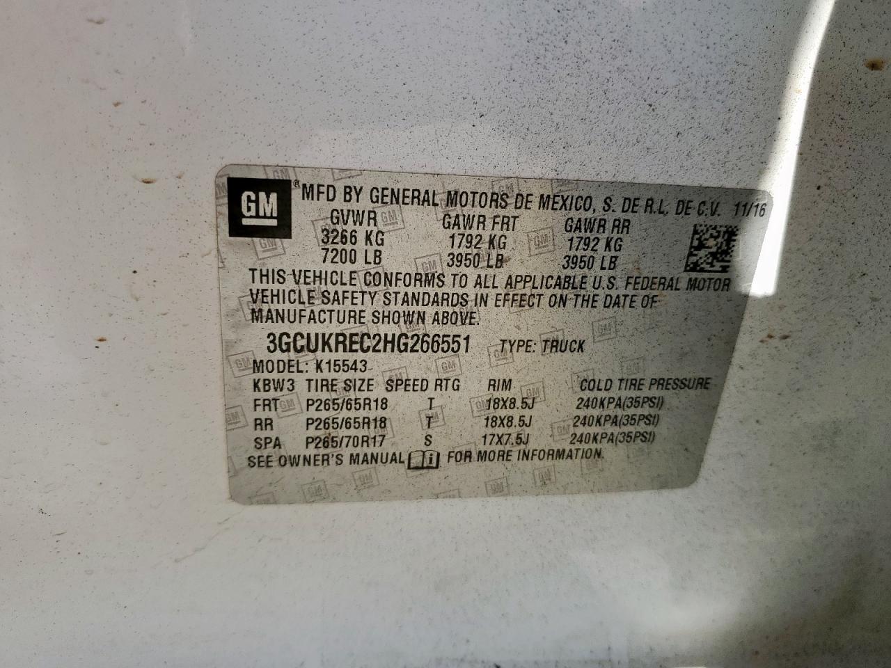 Цвет БелыйЦилиндры 8Привод 4x4 с задним приводомVIN 3GCUKREC2HG266551Состояние Заводится и едет (проверено)Повреждения Передняя или задняя AutoRIA