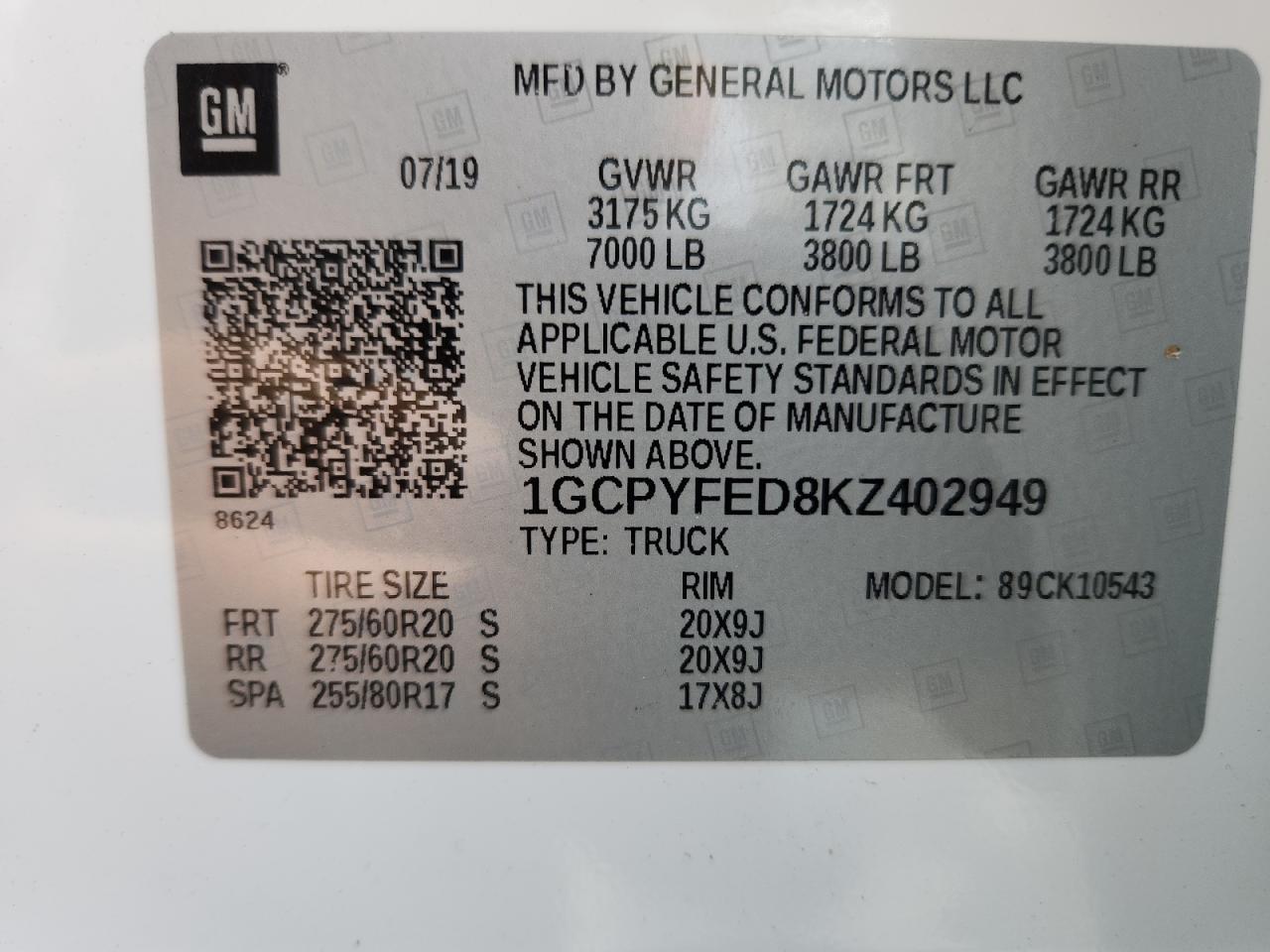 2019 CHEVROLET SILVERADO 2019 року Бензин, 5.3, 4x4 с задним приводом, vin - 1GCPYFED8KZ402949 из США