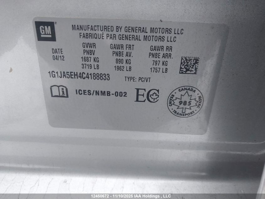 Цвет СеребряныйЦилиндры 4Привод Передний приводVIN 1G1JA5EH4C4188833Состояние ЗаводитсяПовреждения ПередняяДата аукциона 2025-12-10 AutoRIA