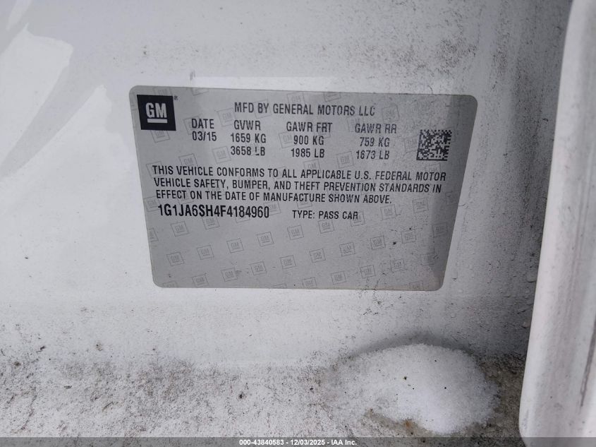 2015 CHEVROLET SONIC 2015 року Бензин, 1.8, Передний привод, vin - 1G1JA6SH4F4184960 из США
