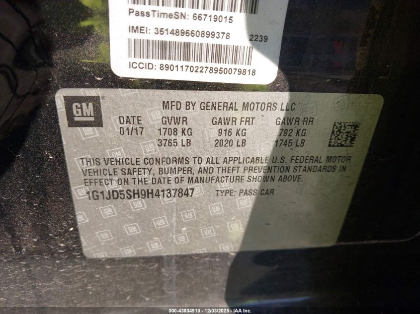 2017 CHEVROLET SONIC LT