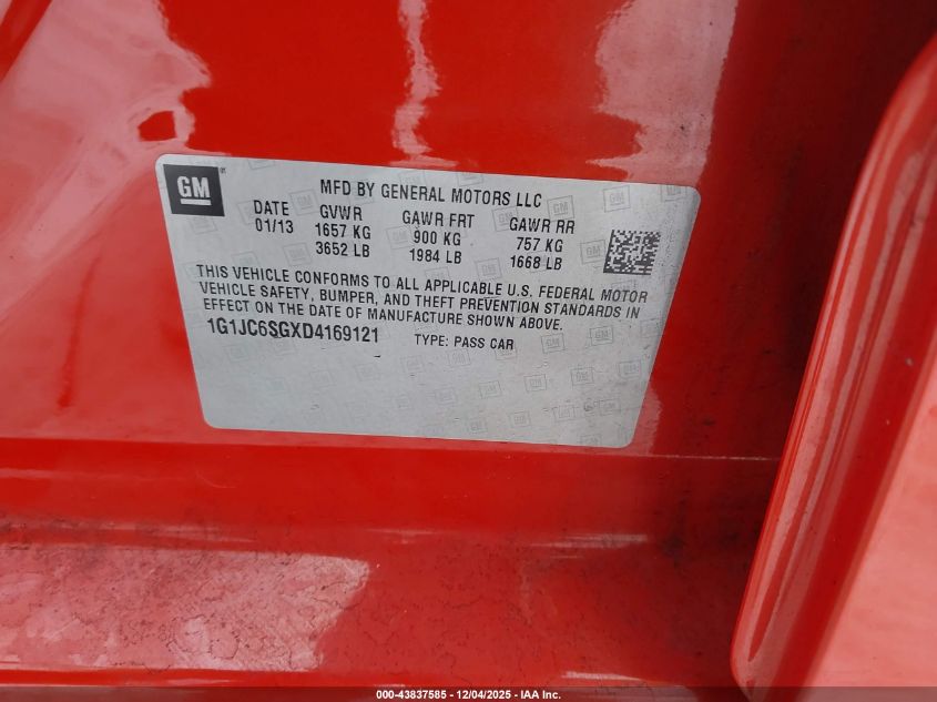 2013 CHEVROLET SONIC 2013 року Бензин, 1.8, Передний привод, vin - 1G1JC6SGXD4169121 из США