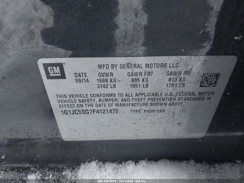 2015 CHEVROLET SONIC 2015 року Бензин, 1.8, Передний привод, vin - 1G1JC5SG7F4121475 из США
