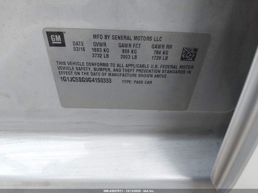 2016 CHEVROLET SONIC LT