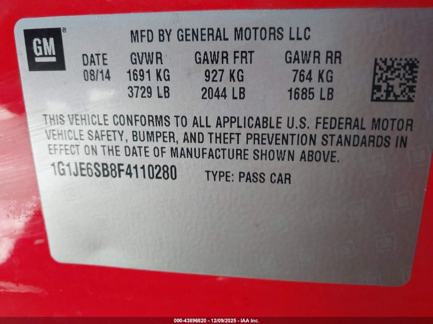 2015 CHEVROLET SONIC 2015 року Бензин, 1.4, Передний привод, vin - 1G1JE6SB8F4110280 из США