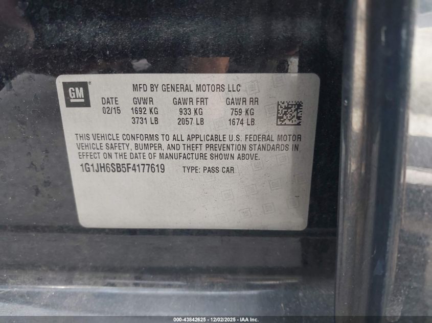 2015 CHEVROLET SONIC 2015 року Бензин, 1.4, Передний привод, vin - 1G1JH6SB5F4177619 из США