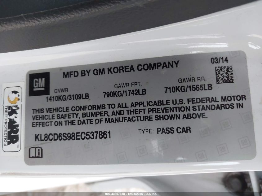 2014 CHEVROLET SPARK 2014 року Бензин, 1.2, Передний привод, vin - KL8CD6S98EC537861 из США