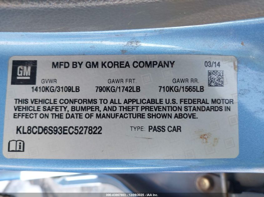 2014 CHEVROLET SPARK 2014 року Бензин, 1.2, Передний привод, vin - KL8CD6S93EC527822 из США