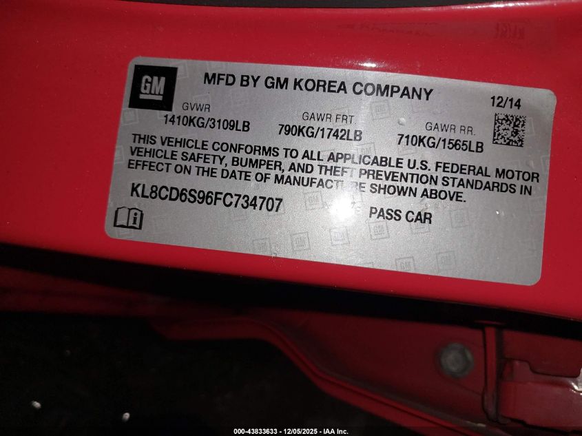 2015 CHEVROLET SPARK 2015 року Бензин, 1.2, Передний привод, vin - KL8CD6S96FC734707 из США