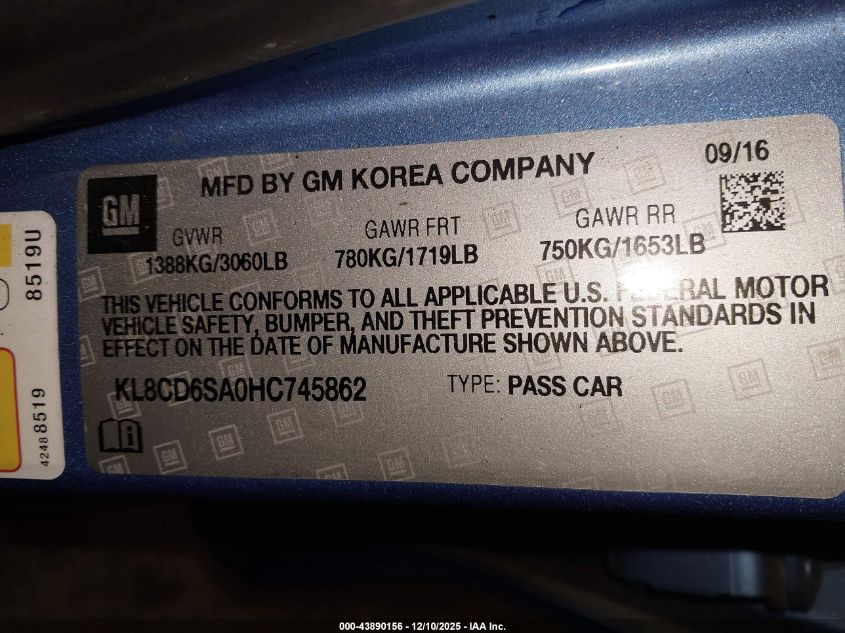 2017 CHEVROLET SPARK 2017 року Бензин, 1.4, Передний привод, vin - KL8CD6SA0HC745862 из США