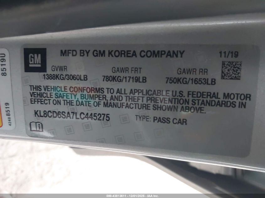 2020 CHEVROLET SPARK 2020 року Бензин, 1.4, Передний привод, vin - KL8CD6SA7LC445275 из США