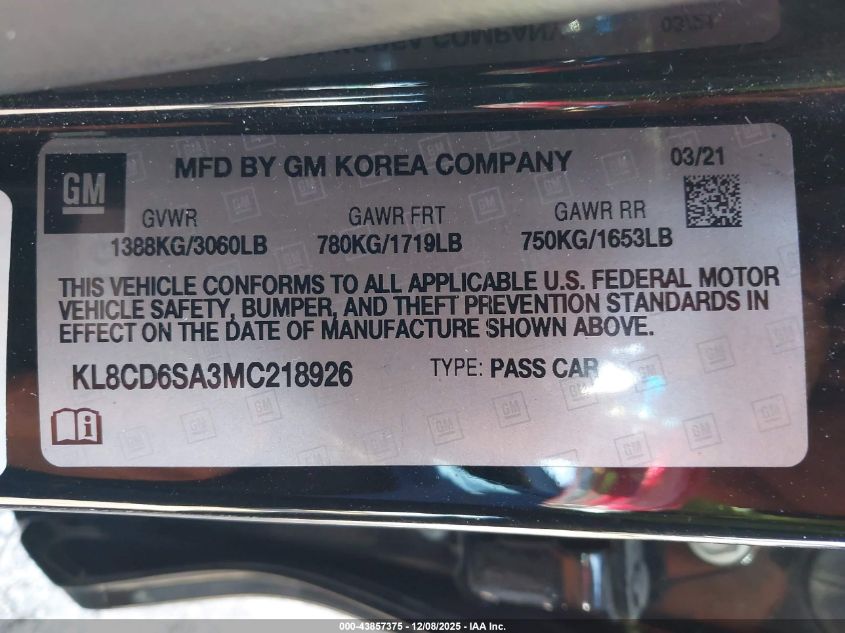 2021 CHEVROLET SPARK 2021 року Бензин, 1.4, Передний привод, vin - KL8CD6SA3MC218926 из США