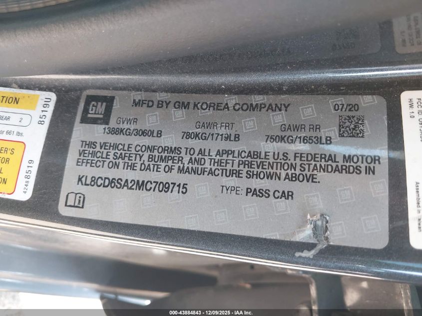 2021 CHEVROLET SPARK 2021 року Бензин, 1.4, Передний привод, vin - KL8CD6SA2MC709715 из США