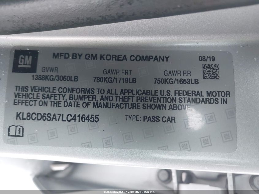 2020 CHEVROLET SPARK 2020 року Бензин, 1.4, Передний привод, vin - KL8CD6SA7LC416455 из США