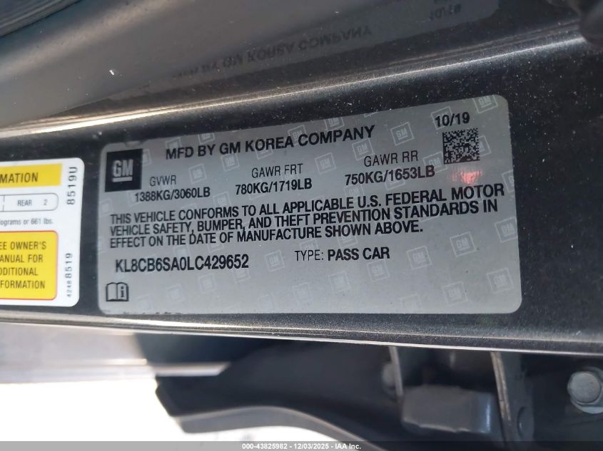 2020 CHEVROLET SPARK 2020 року Бензин, 1.4, Передний привод, vin - KL8CB6SA0LC429652 из США