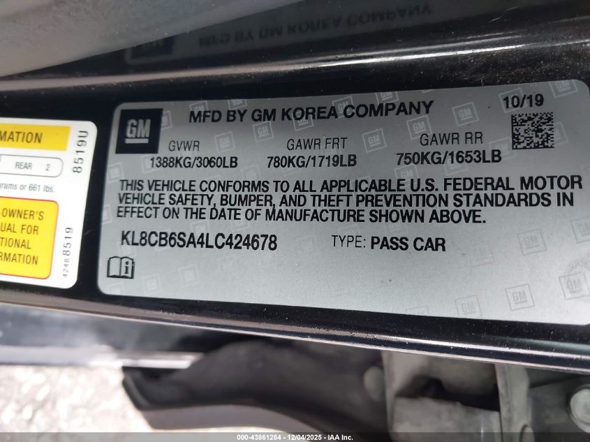 2020 CHEVROLET SPARK 2020 року Бензин, 1.4, Передний привод, vin - KL8CB6SA4LC424678 из США