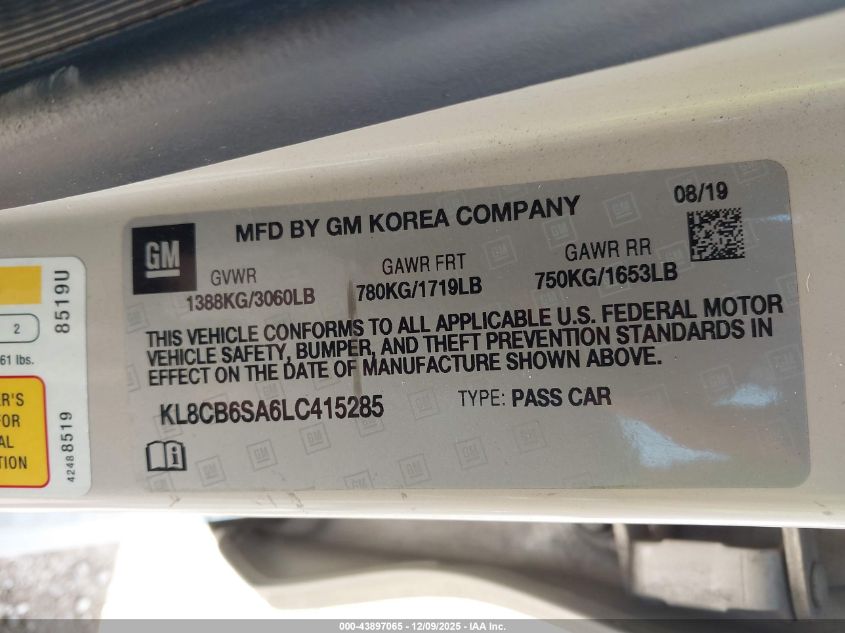 2020 CHEVROLET SPARK 2020 року Бензин, 1.4, Передний привод, vin - KL8CB6SA6LC415285 из США