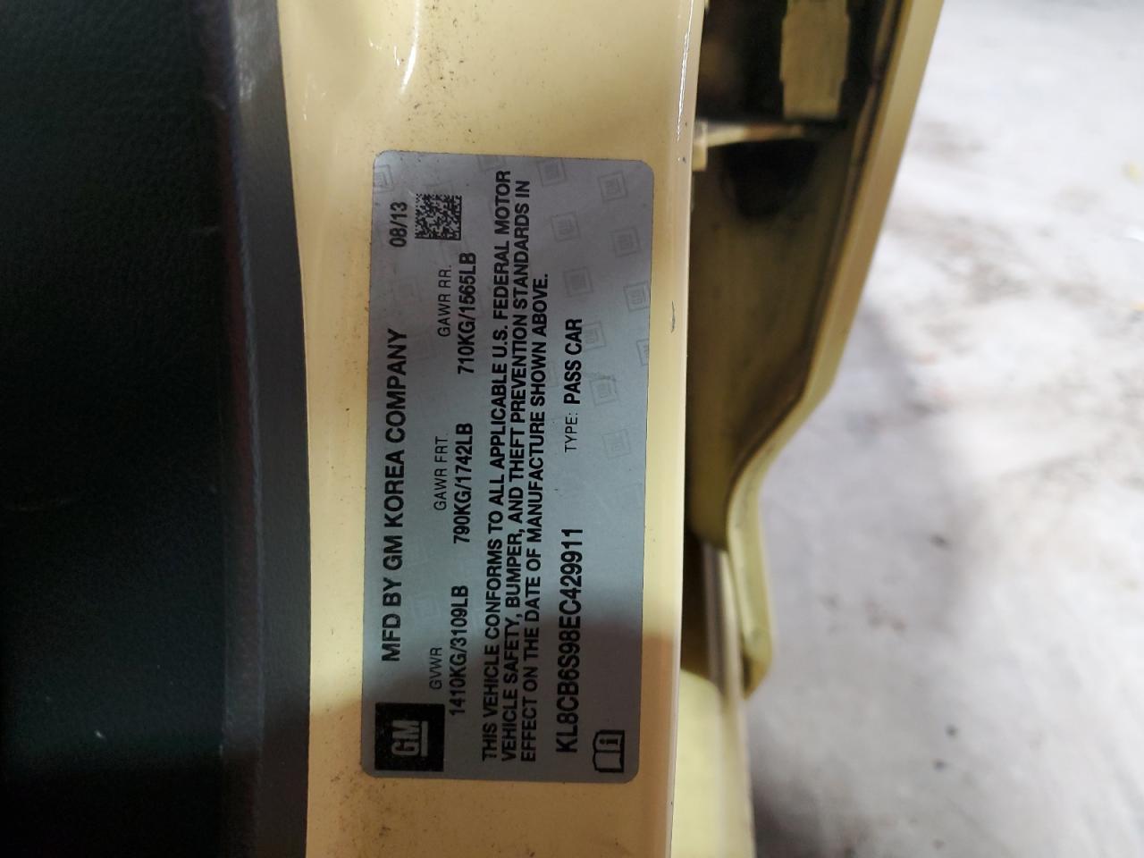 2014 CHEVROLET SPARK 2014 року Бензин, 1.2, , vin - KL8CB6S98EC429911 из США
