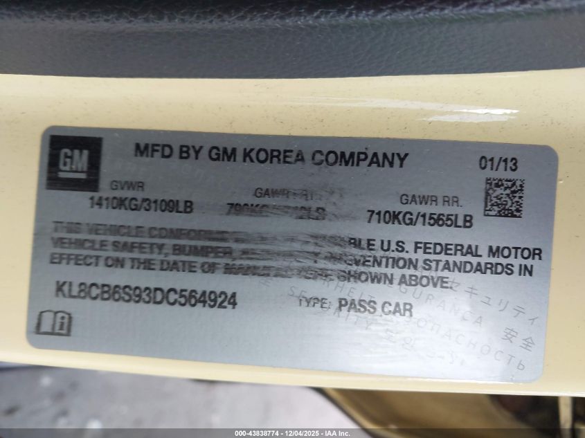 2013 CHEVROLET SPARK 1LT