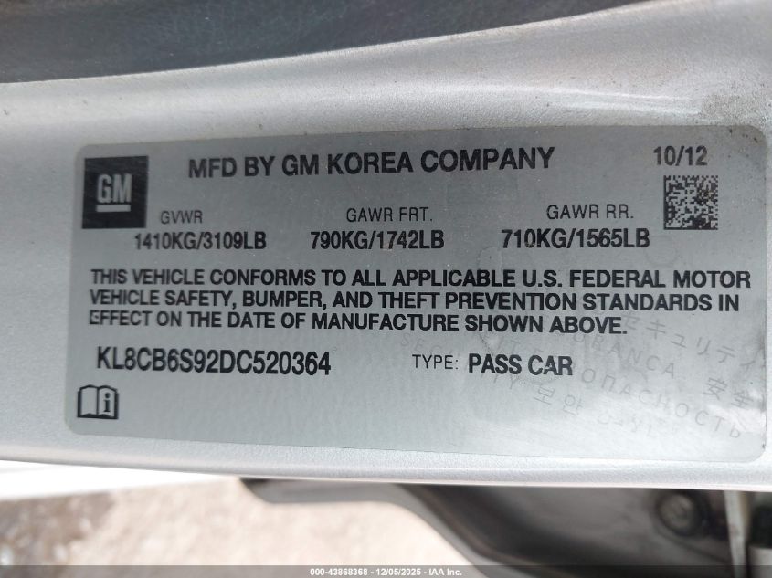 2013 CHEVROLET SPARK 1LT