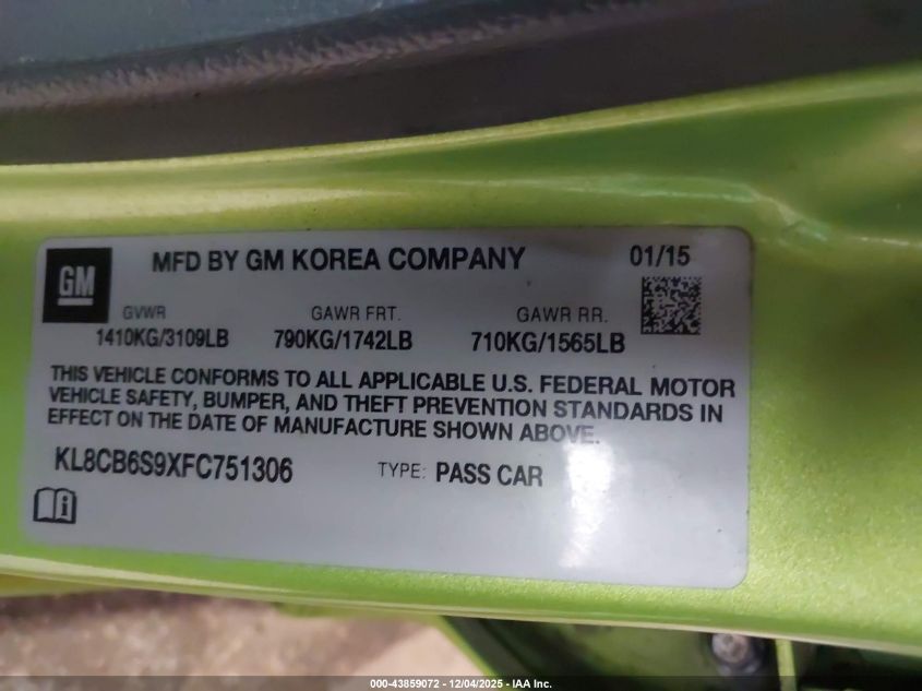 2015 CHEVROLET SPARK 2015 року Бензин, 1.2, Передний привод, vin - KL8CB6S9XFC751306 из США