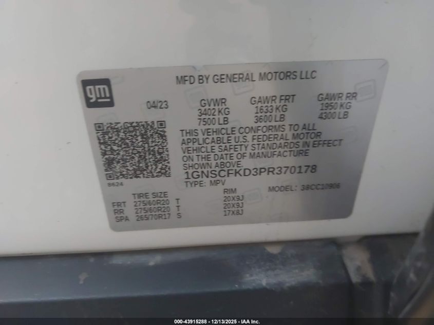 2023 CHEVROLET SUBURBAN 2023 року Бензин, 5.3, , vin - 1GNSCFKD3PR370178 из США