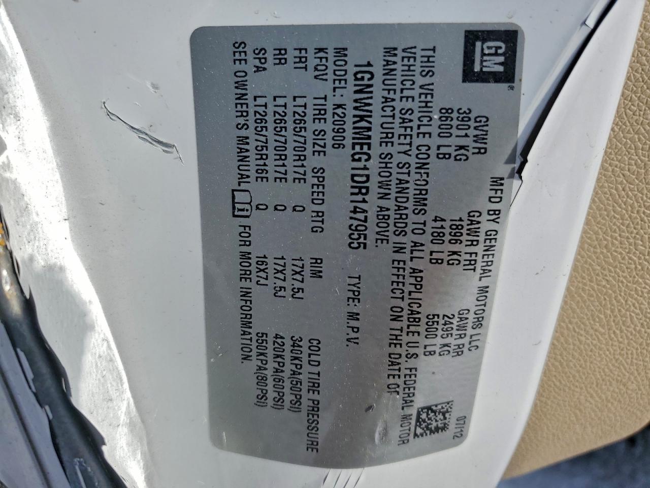 Цвет БелыйЦилиндры 8Привод 4x4 с задним приводомVIN 1GNWKMEG1DR147955Состояние Заводится и едет (проверено)Повреждения По бокам AutoRIA
