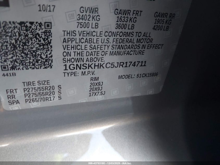 2018 CHEVROLET SUBURBAN 2018 року Бензин, 5.3, Полный привод, vin - 1GNSKHKC5JR174711 из США